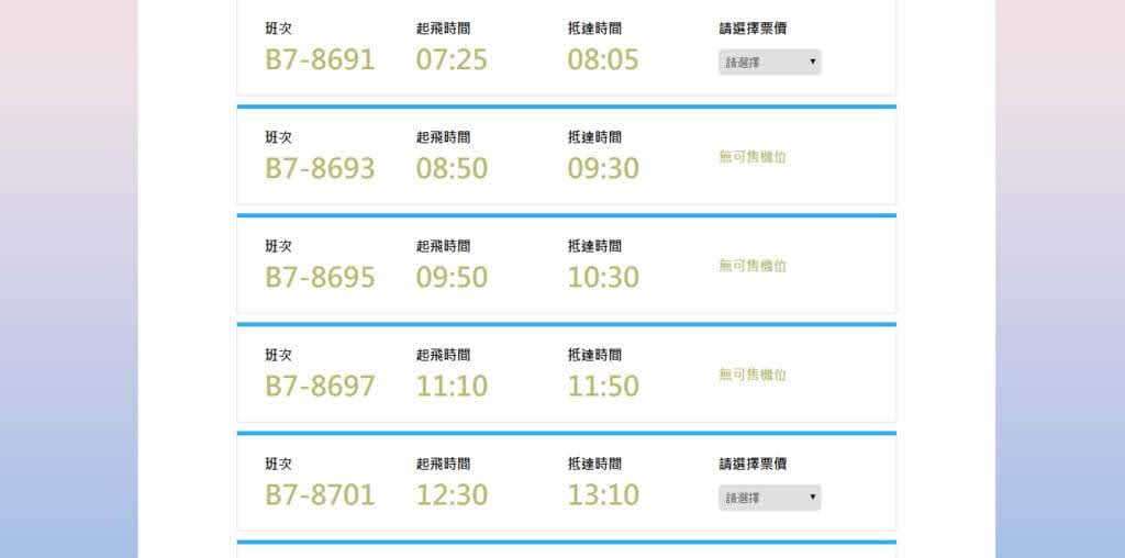 チケットを予約する方法②|航班選擇 (時間帯の選択)
